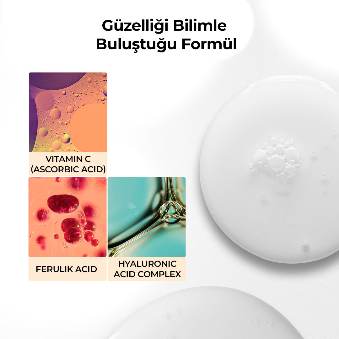 Ana Etki: C vitamini + Ferulik Asit ile cilt tonunu eşitler, lekelerin görünümünü azaltır.